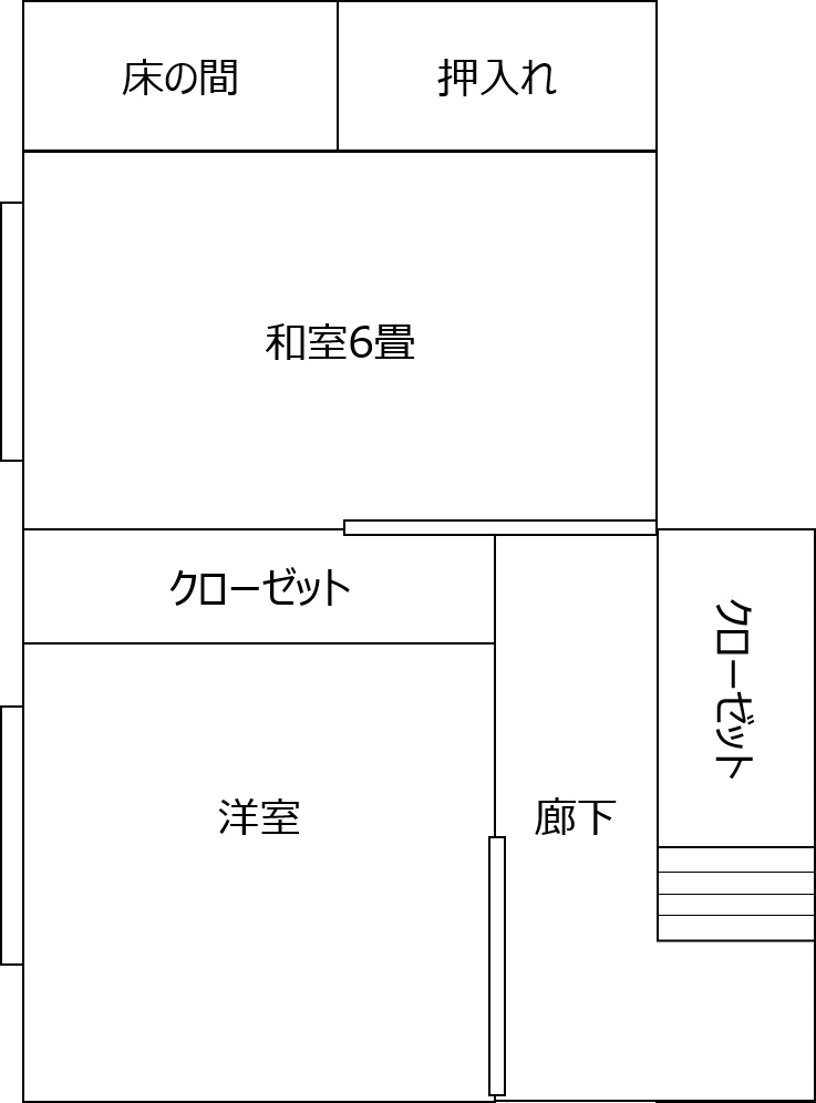 家族構成が変わるため、和室2間を分離して、洋室と和室に分離したリフォーム事例になります。それぞれの部屋を独立した個室として使えるよう、廊下を新設しました。