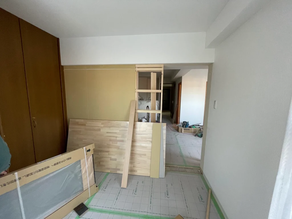 | 主なリフォーム内容 | ・間仕切り壁取付け ・新規開き戸設置 ・クロス張替え |