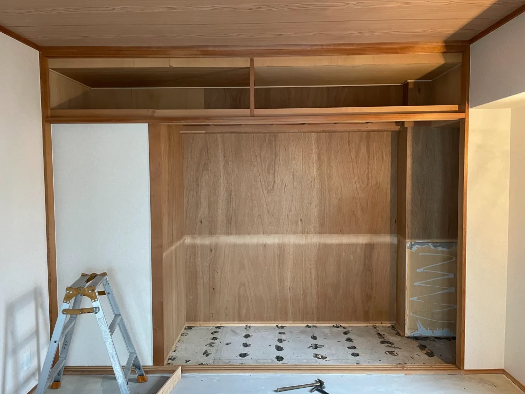 | 主なリフォーム内容 | ・押入れ・クローゼット解体工事 ・フローリング張り工事 ・間仕切り壁設置 ・カーペット張り工事 ・クロス張替え ・襖張替え |