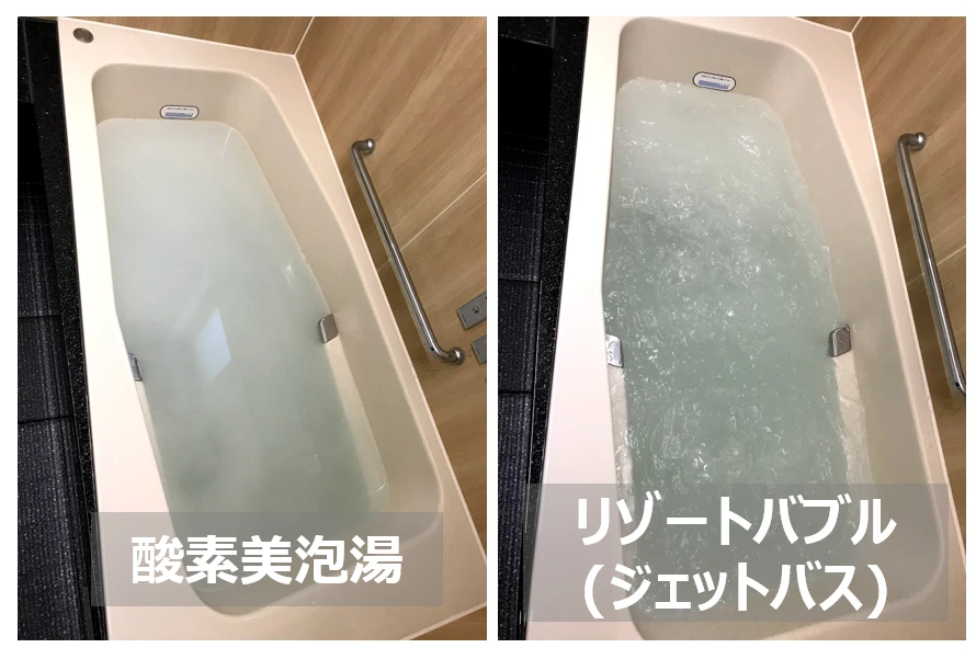 今回、リゾートバブルと呼ばれるジェットバスと、酸素美泡湯と呼ばれるオプションを付けました。ジェットバスは体を心地よく刺激し、酸素美泡湯は肌をつやつやにする効果があります。