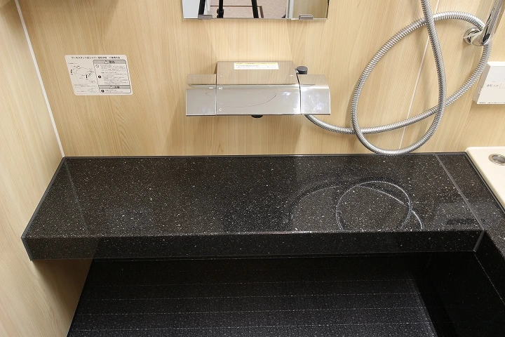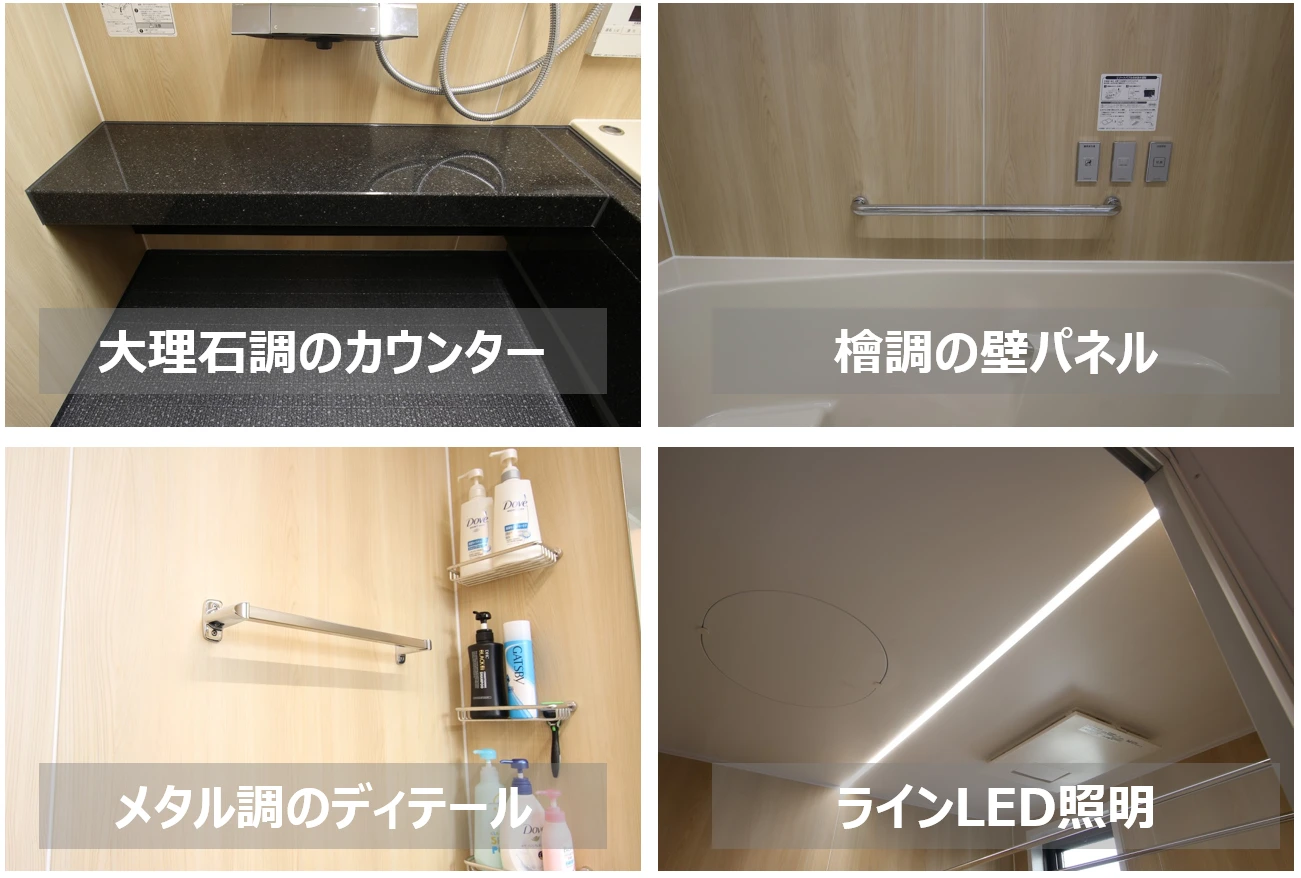 ユニットバスはパナソニックのハイグレードのユニットバス「Lクラス」が採用されました。Lクラスでは、ミドルグレードのユニットバスでは付けられないリゾートバブルや酸素美泡湯などの特別なオプションが付けられるほか、大理石調のカウンターなどティテールも高級感のあるデザインになっております。
