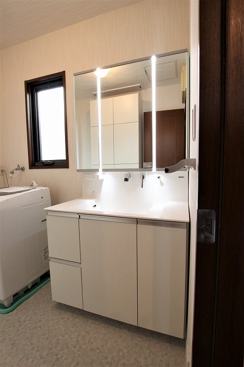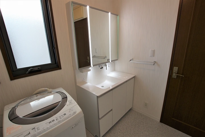 洗面台はパナソニックのハイグレード洗面台「ウツクシーズ」が採用されました。重厚感のある人造大理石が特長的で、水アカが付きにくく掃除がしやすいと評判です。