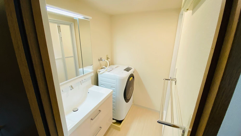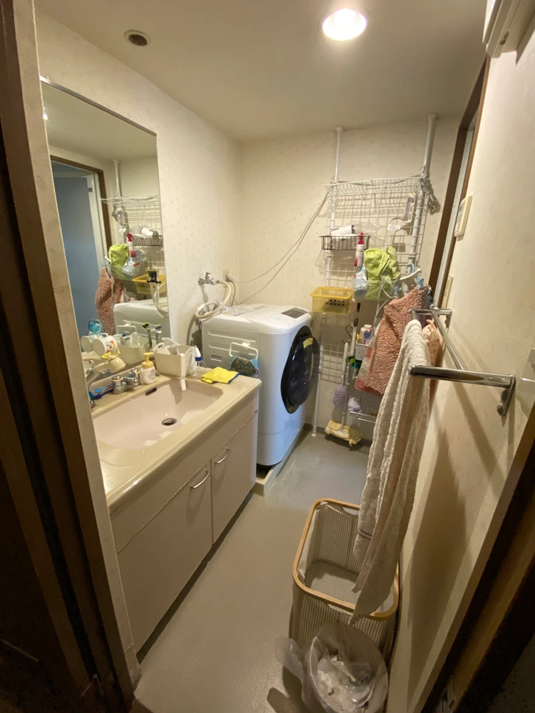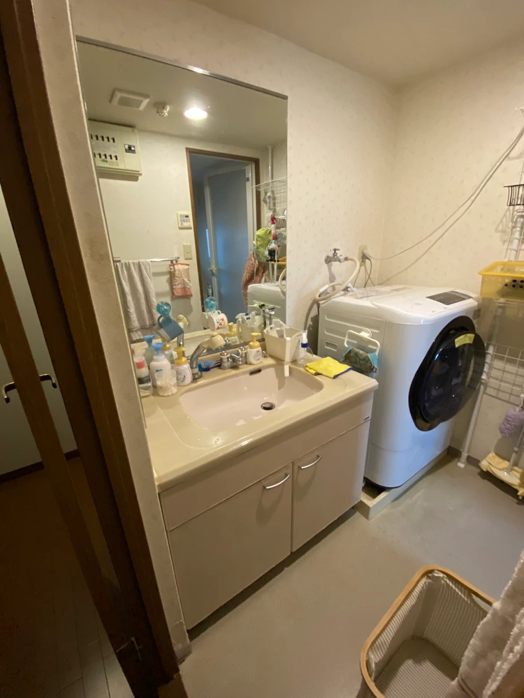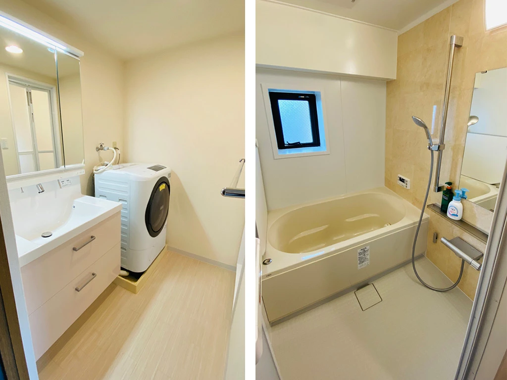 | 主なリフォーム内容 | ・ユニットバス交換(サイズアップ1216→1316) ・洗面化粧台交換 ・洗面室クッションフロア張替え |
