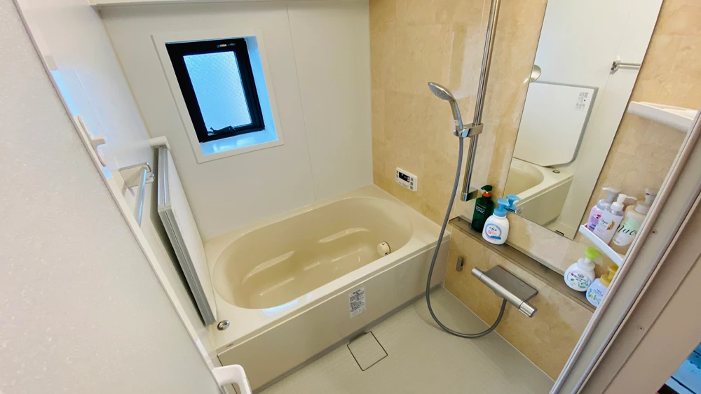 少しでも広々とした空間でバスタイムを楽しみたいけど、間取り変更工事は難しい、という方は多いはず。最近は、間取り変更なしでワンサイズ上のユニットバスが導入できるよう工夫されている商品もあります。施工可能かどうかは入念な調査が必要ですが、今回は当社と製造元担当者での2重チェックを行い、導入可能と判断しました。