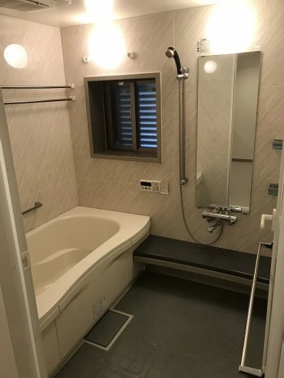 | 主なリフォーム内容 | ・リクシルのハイグレードのユニットバス「スパージュ」へのユニットバス交換 ・CMでおなじみの肩湯、打たせ湯など付き ・壁パネルはタイル調でまるで在来浴室のような高級感 ・リクシルのハイグレードの洗面台「ルミシス」への洗面台交換 ・洗面ボウルは2つあるタイプ ・洗面所のクロス・クッションフロア張替え |
