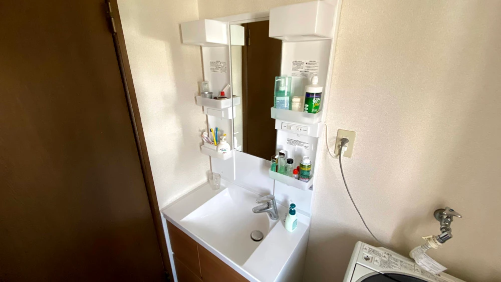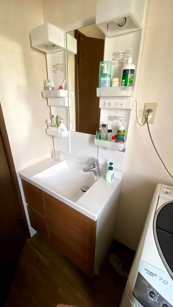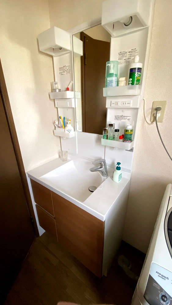洗面所は限られたスペースのため、奥行き40センチのリクシル「エスタ」を選びました。狭い奥行きながらも不便さを感じさせません。