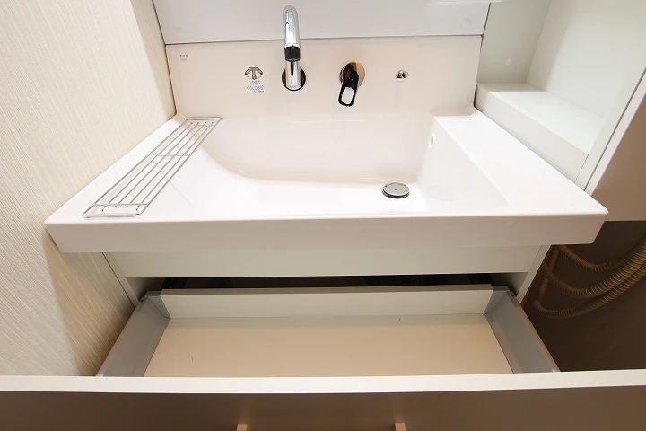 洗面台はリクシルのミドルグレード「ピアラ」を採用しました。ピアラの特長はそのコストパフォーマンスの良さ。比較的に費用を抑えられる一方、使いやすさや収納量も充実しております。