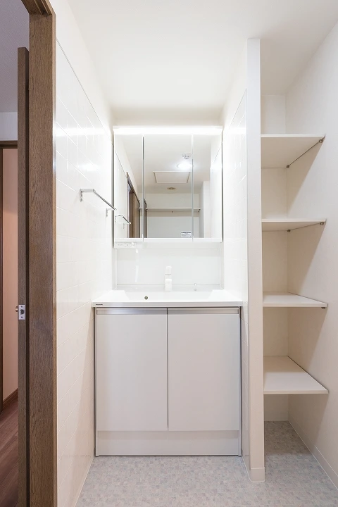 今回、費用を抑えたいというご要望のもと、パナソニックのスタンダード洗面台「Cライン」をおすすめしました。三面鏡で収納量が豊富とお客様にもご満足いただけました。