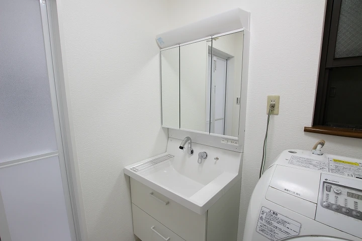 | 主なリフォーム内容 | ・リクシルのアライズMタイプへのユニットバス交換 ・サイズは1616サイズ ・リクシルのピアラ(幅75㎝)への洗面台交換 ・洗面所のクロス・クッションフロア張替え ・トラップ付きの洗濯機パンの設置 |
