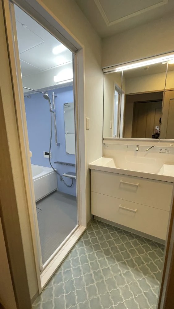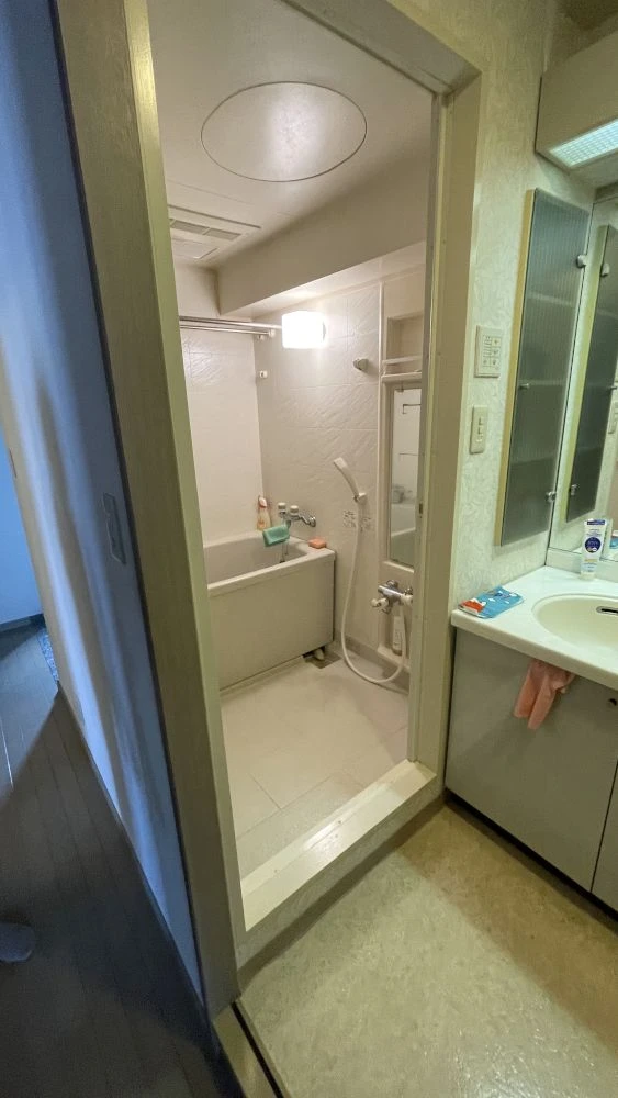 | 主なリフォーム内容 | ・新規ユニットバス リクシル「リノビオ」 ・追い炊きアダプター ・既設浴室暖房乾燥機撤去 ・洗面台交換 ・洗濯機パン交換 ・洗面所クロス・床張り替え ・既設設備撤去・解体・廃材処分 |