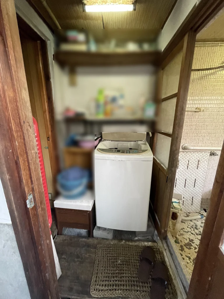 古いタイルの在来浴室をタカラスタンダードの「エメロード」でリフォームした事例です。古い廊下をそのまま利用していた脱衣所と、ブロックを置いて対応していた洗濯機置き場も一新しました。