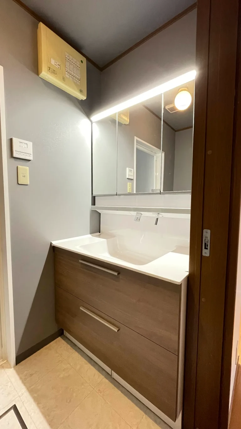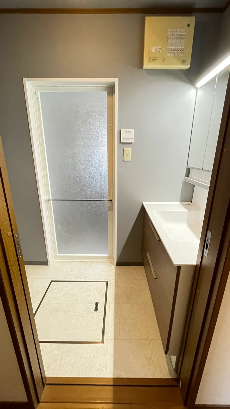 | 主なリフォーム内容 | ・ユニットバス交換 タカラスタンダード「プレデンシア」 ・天井埋込型浴室暖房乾燥機設置 ・洗面化粧台交換 TOTO「オクターブ」100㎝ ・洗面所クロス・クッションフロア張替え |