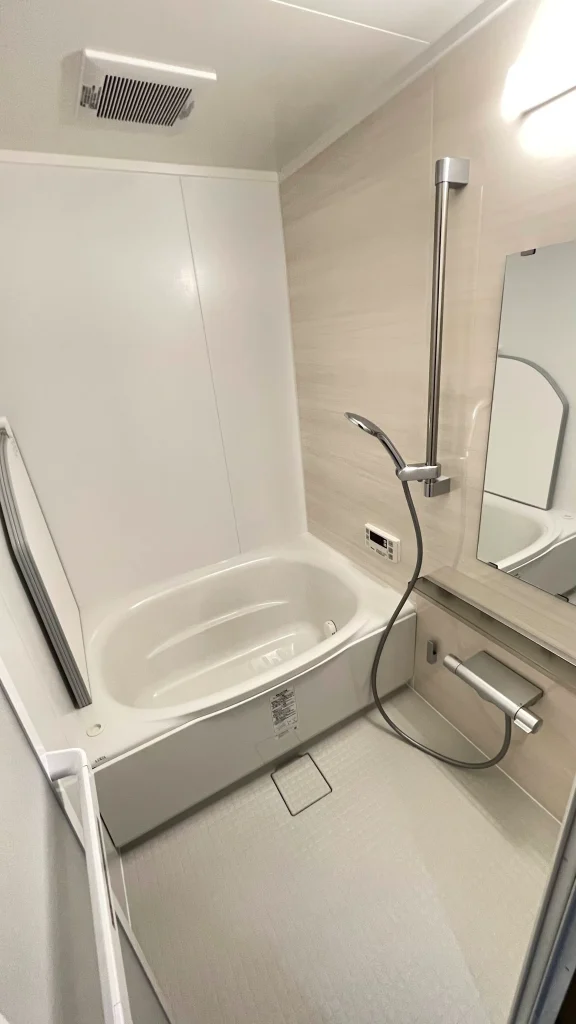 浴室はリクシルのユニットバス「リノビオV」へ、洗面台はリクシル「オフト」へのリフォーム事例。