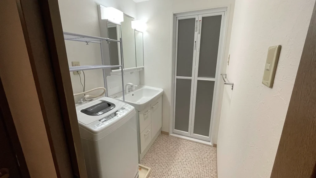 | 主なリフォーム内容 | ・ユニットバス交換 リクシル「リノビオ」 ・洗面化粧台交換 リクシル「オフト」 ・洗面所クロスおよびクッションフロア張替え |