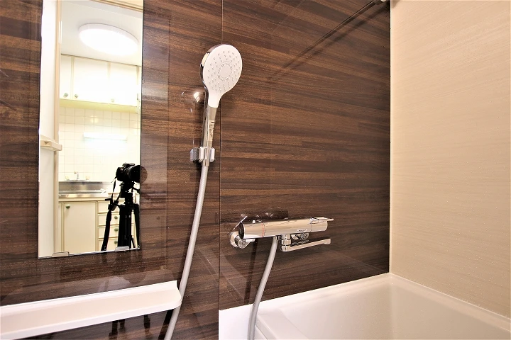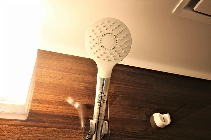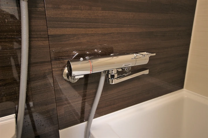 大きなシャワーヘッドと使いやすいサーモスタット水栓
