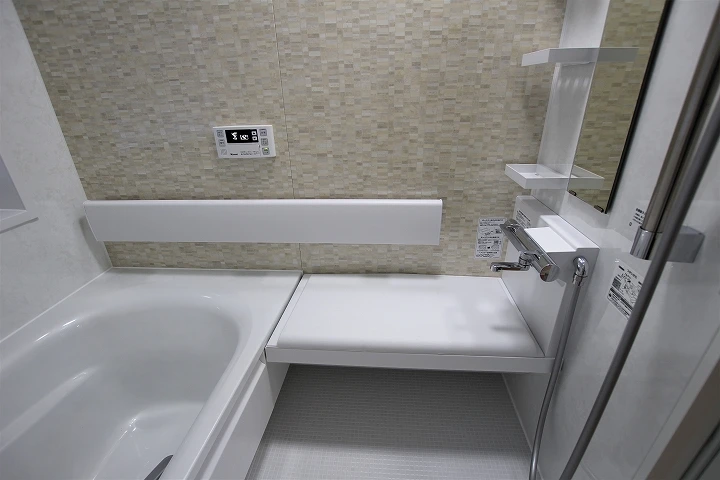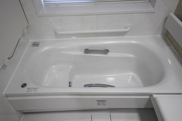 TOTOでは、FRP(強化繊維プラスチック)の浴槽と人造大理石の浴槽の浴槽の2種類を用意しており、今回人造大理石の浴槽が採用されました。人造大理石の浴槽は、光沢があり、見た目もきれいで丈夫なため、キズが付きにくく、汚れが溜まりません。