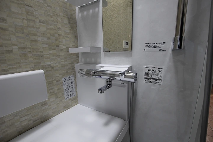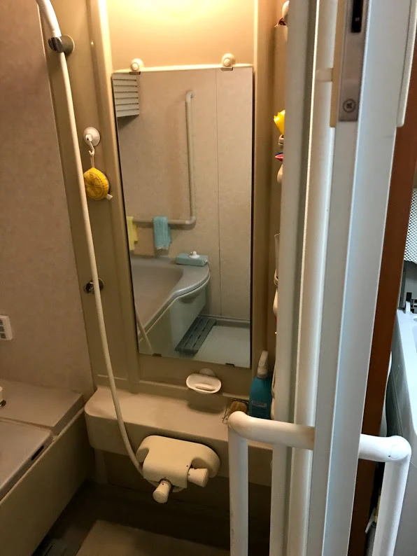 高齢の方でも安心して使っていただけるよう、TOTOのベンチ付きタイプ「サザナFタイプ」を今回ご提案しました。ベンチに座った後、手すりを伝いながら浴室に入れると、最近人気のユニットバスになります。