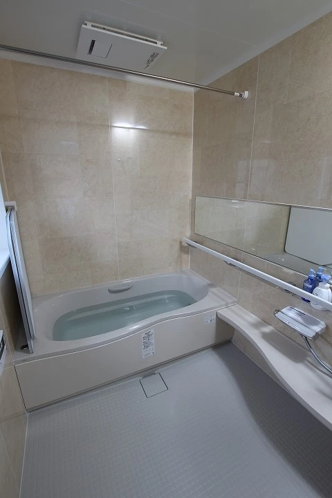 | 主なリフォーム内容 | ユニットバスは、リクシル「アライズKタイプ」160㎝×200㎝ ※アライズ内で最高級のKタイプ(横向きの鏡、うるつや浄水など) ※強力な200Vの浴室暖房乾燥機付き ※脱衣所のクロス張替え込み |