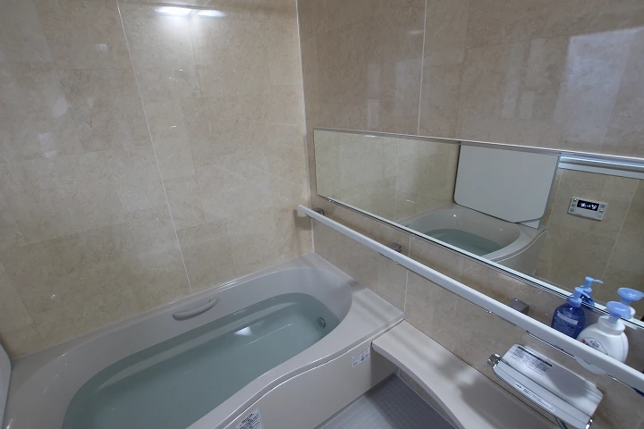 ユニットバスはメーカーの規格のサイズがあり、その中で一番大きいものが1620サイズ(160㎝×200㎝)になります。1620サイズは洗い場が広く、小さなお子様と入っても広々と使えます。