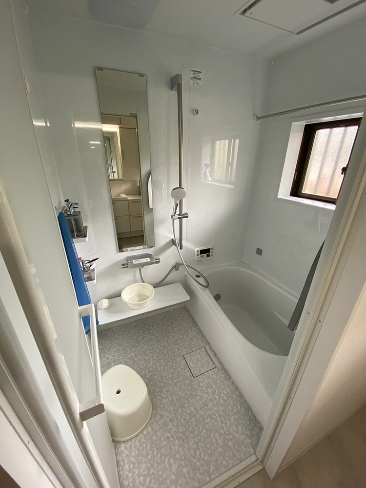 コロナ禍でも気持ちが明るくなれれば、とのことでご依頼いただきました。全体的に明るい色へ変更し、ますます明るく清潔感のある空間へ。浴槽は角ばったラインから、人間工学を応用した丸みのある「TOTOサザナ」で体に優しいリラックス設計へ!