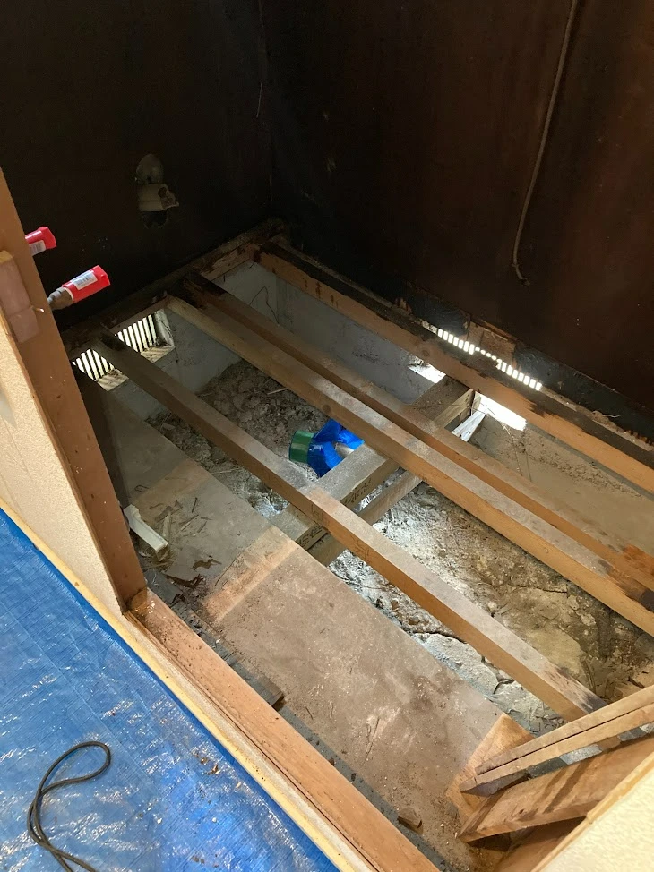 今回、1116(110㎝×160㎝)のユニットバスでしたが、現地調査をしたうえで、1216(120㎝×160㎝)のユニットバスを提案しました。通常のユニットバス交換工事と比べて、洗面所側に大きく開口を広げ、床を補強したうえで、壁を作り直しました。