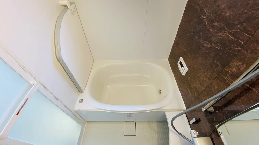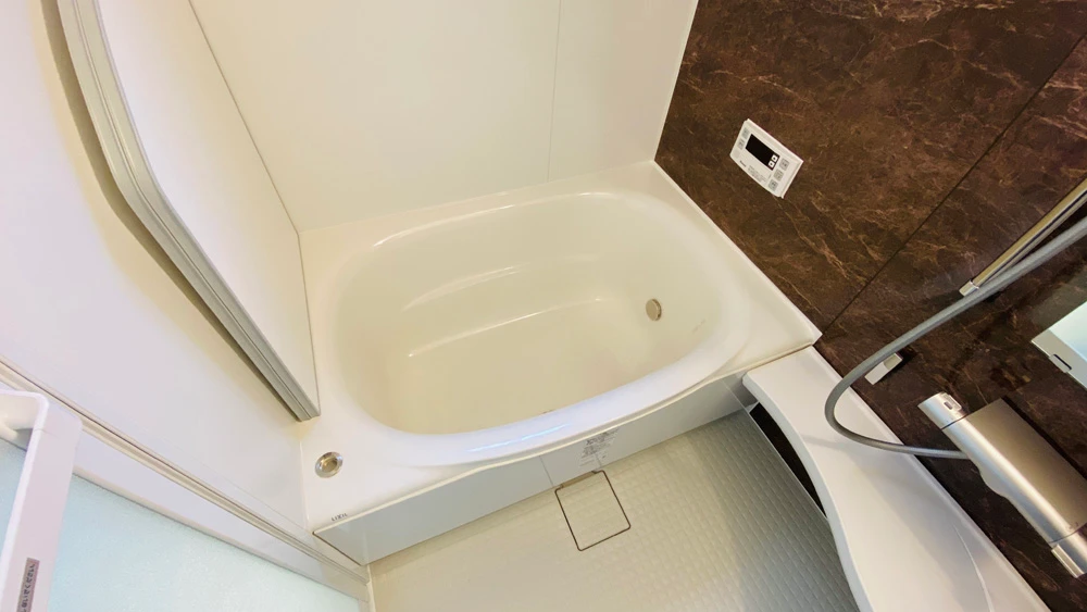 既存ユニットバスより大きなサイズのものを導入したリフォーム事例です。既存ユニットバスは1116サイズでしたが、床と壁に手を加えることでより大きなユニットバス1216サイズを入れることができました。また、水栓の位置も移動し、より広々と使いやすさがアップしました。浴槽には断熱材が使われており、広さが増しても湯冷めしにくいバスルームに仕上がりました。