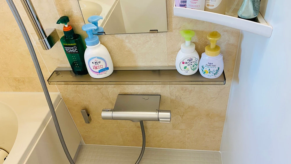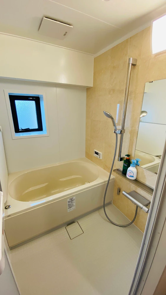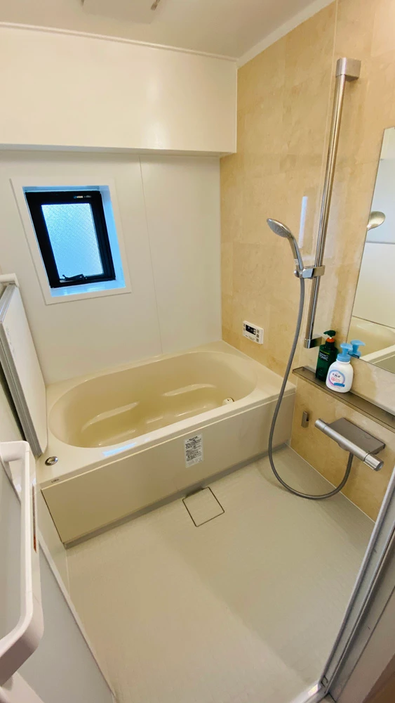 既存のユニットバスのサイズは1216でしたが、1316へのサイズアップに成功しました。マンション浴室は間口を広げる工事が難しいので諦めがちですが、最近は同じ空間でもサイズアップが図れるよう商品開発に工夫が見られます。今回は、施工可能かどうか綿密に調査した上で判断しました。広くなっただけではなく、保温性ある浴槽やお手入れのしやすい素材のリクシル「リノビオV」で、QOLアップです!