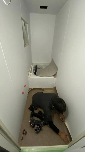 もともと昔ながらのタイルのお風呂で、幅が狭いため、ユニットバスを入れることができませんでした。そのため、今回、下地から作り直して、天井・壁をパネル、床をシートで仕上げることでユニットバス風にリフォームすることができました。