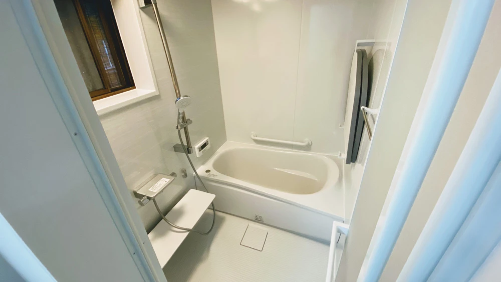 タイル張り在来工法の浴室を解体し、ユニットバスを導入した施工例です。
