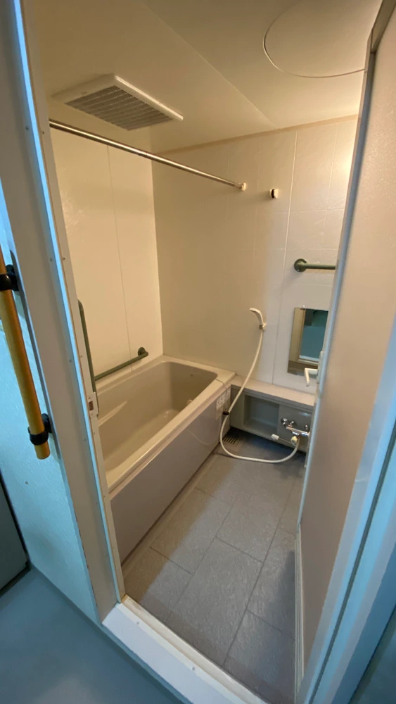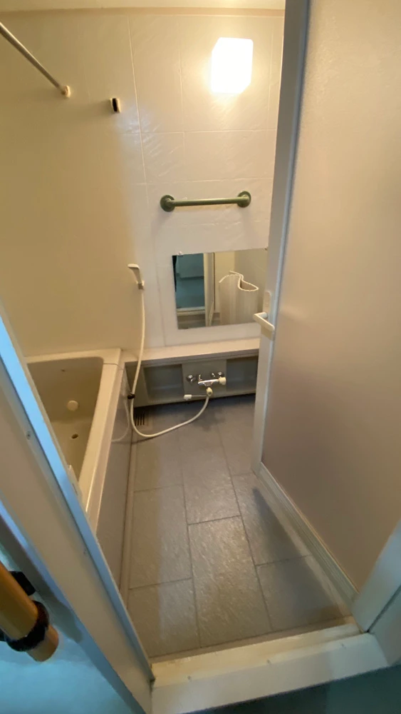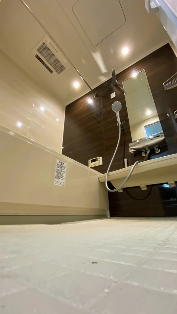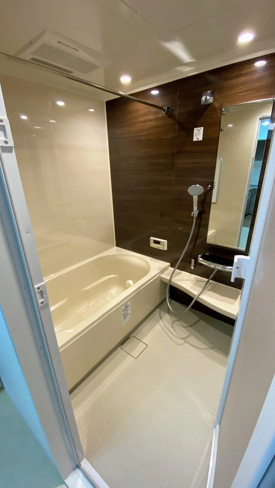 | 主なリフォーム内容 | ユニットバス交換 リクシル「リノビオV」1418サイズ ※オプションは、ダウンライト、全面光沢パネル、電気式の浴室暖房乾燥機 ※脱衣所のクロス張替え込み |
