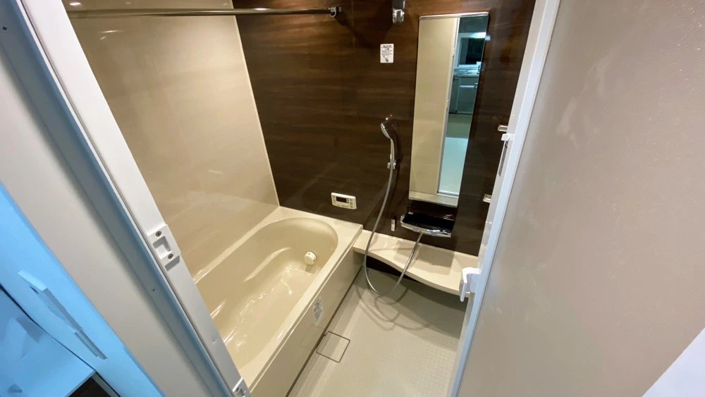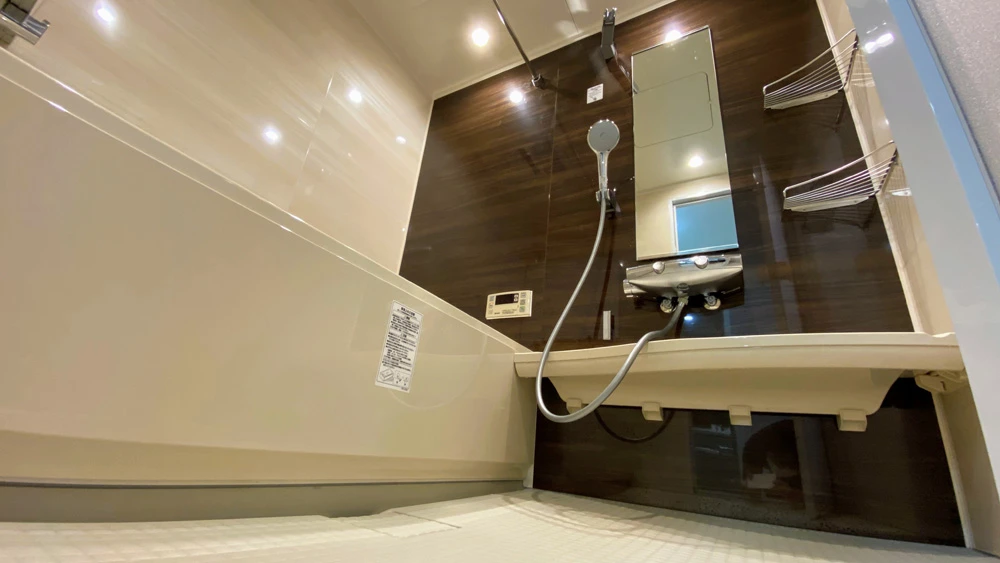 ユニットバスはリクシルのマンション用ユニットバス「リノビオV」を採用。マンションとしては大きなサイズの1418サイズが入り、ゆったりと浴槽に浸かっていただけます。