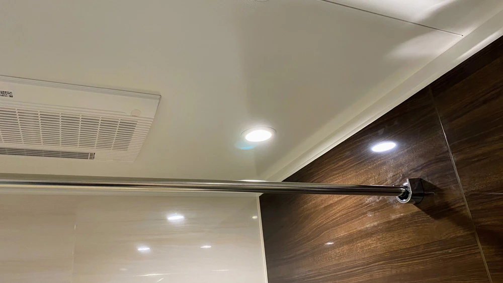 マンション浴室向けユニットバスの中でも大きいサイズの1418が入りました。豊富なカラーバリエーションが人気のリクシル「リノビオV」ですが、今回はウッド調をお選びいただきました。照明はダウンライトにし、生活感が出てしまいがちな空間もスッキリと仕上がりました。