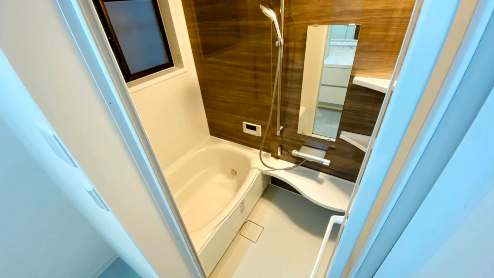 タイル張りの浴室を、断熱性にすぐれお手入れのしやすいユニットバスへ交換。戸建て用ユニットバスシリーズ、リクシル「アライズ」は、選べるパネルもおしゃれなものが揃っていて定番の人気です。
