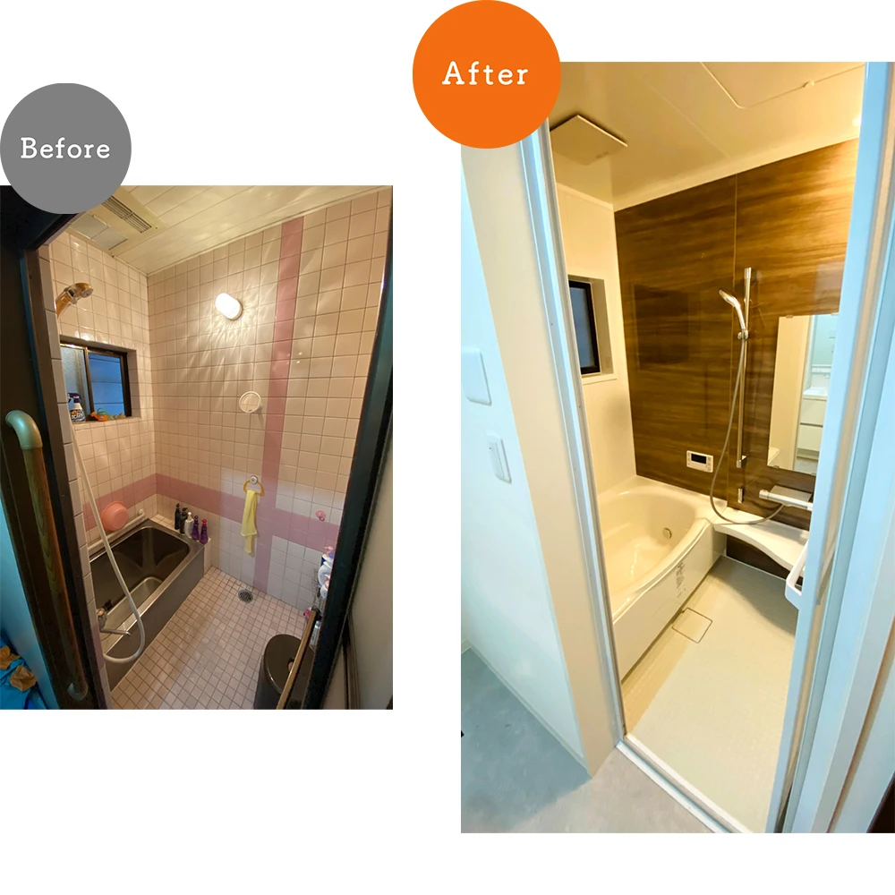 主なリフォーム内容 タイル張りの在来浴室から、ユニットバスリフォーム