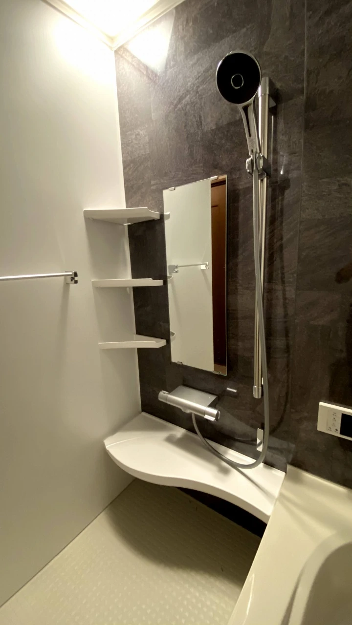 シャワーヘッドの色を黒にするなど、お客様のこだわりが随所にみられるお風呂になりました。
