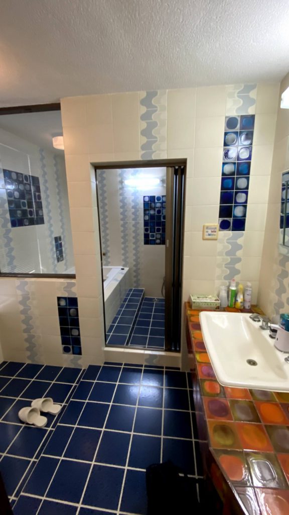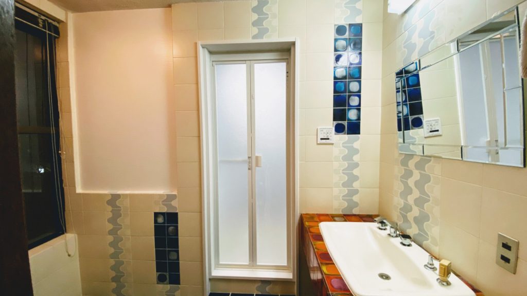 タイル張りの在来浴室をTOTOのユニットバス「サザナ」にリフォームした事例です。浴室と洗面所の凝ったタイル模様は素敵ですが、タイル床のお風呂は冬場は冷たく、健康にもよくありません。新しい浴室は「ほっからり床」で断熱性が高く、冬でも冷たさをやわらげられます。ジェットバスもオプションでつけ、快適で寛げるお風呂場を実現しました。
