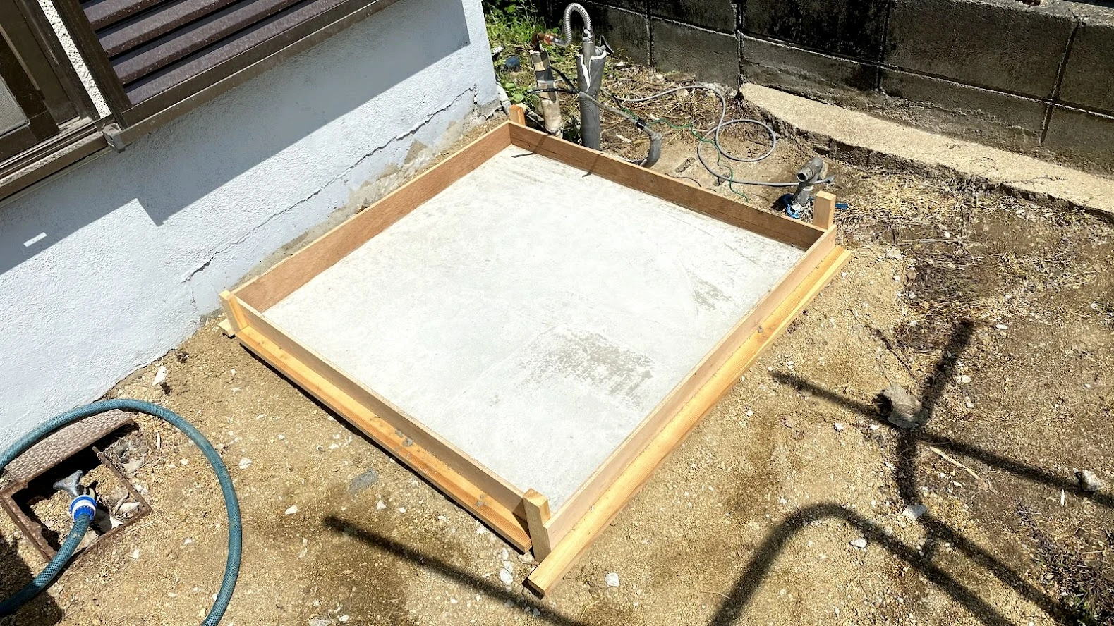 エコキュートを置くため、型枠を作って土台から作り直し