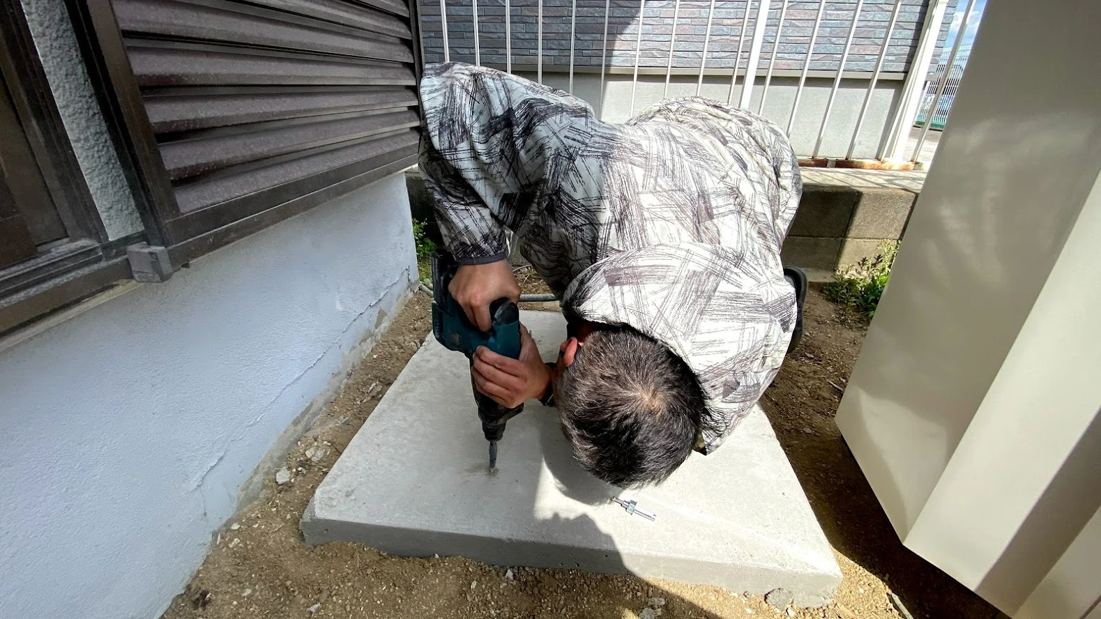 アンカーボルト打込みのため、ドリルで開口