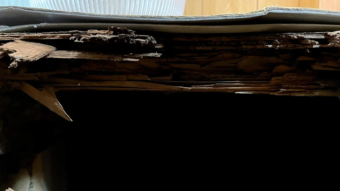 脱衣スペースの床が腐食していることを確認