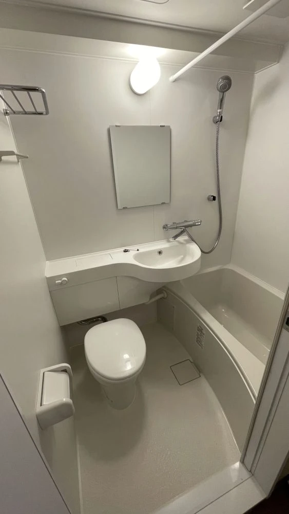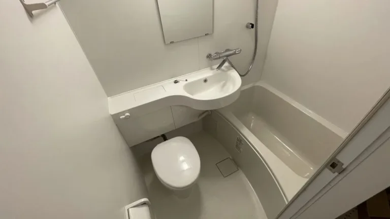 賃貸物件の3点ユニットバスをリフォームした事例です。ビジネスタイプのホテルでも採用されているグレードのユニットバスで、シンプながらもシャープで機能的です。