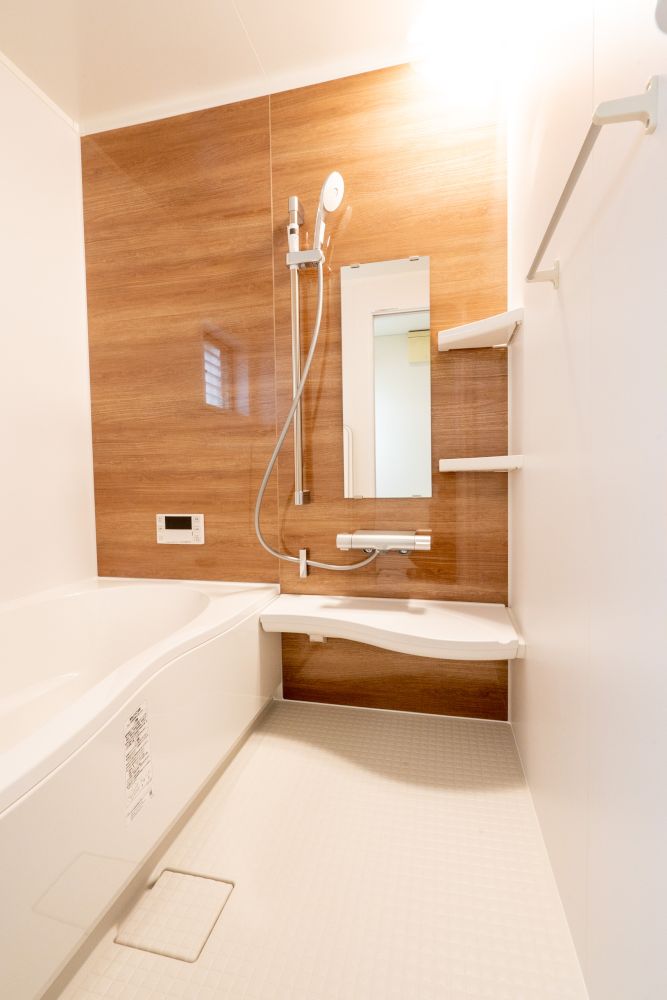 新しいユニットバスは、床材も壁のパネルも水あかがつきにくく落としやすいものに進歩しています。また、取り外して丸ごと洗えるカウンターや、凸凹が少なく掃除がしやすい水栓など、新しい工夫がいっぱいです。保温性や節水機能も向上しています。