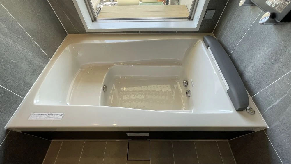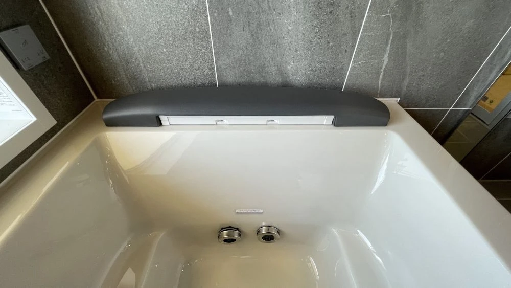 こちらのお客様は、ジェットバスをオプションで選ばれました。肩に柔らかくお湯を流す肩湯は快適でしかもしっかり身体を暖めてくれます。ジェットバスはエアを含まない水流で音が静かなタイプなので、マンションでも騒音が気になりません。