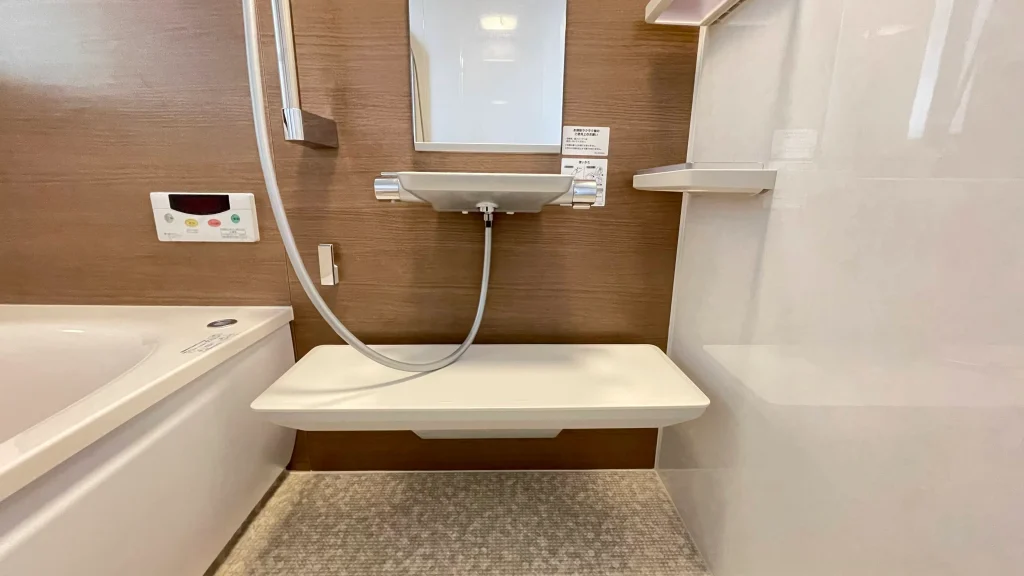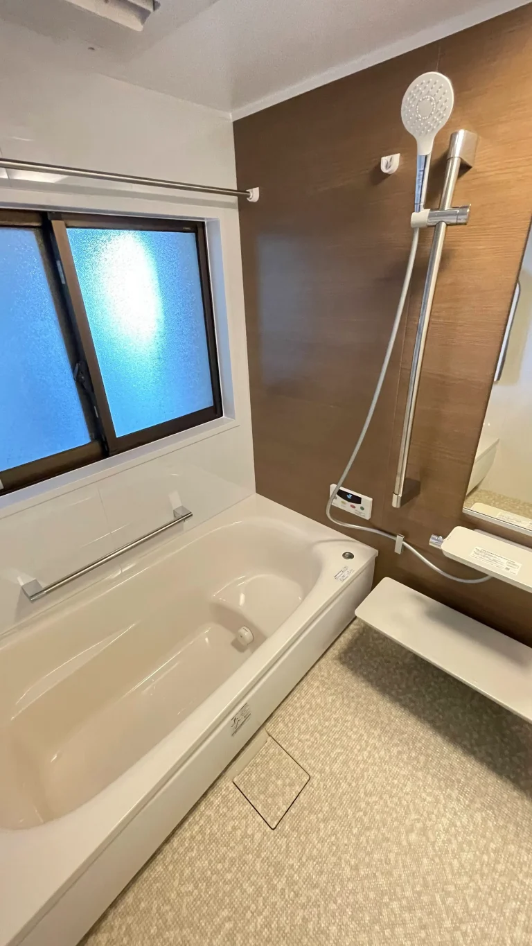 冬でもヒヤッとしない床や取り外しのできるカウンター、高さや角度を自由に調節できるシャワーなど、最新のユニットバスならではの機能が満載で、ご満足いただけるお風呂リフォームができました。