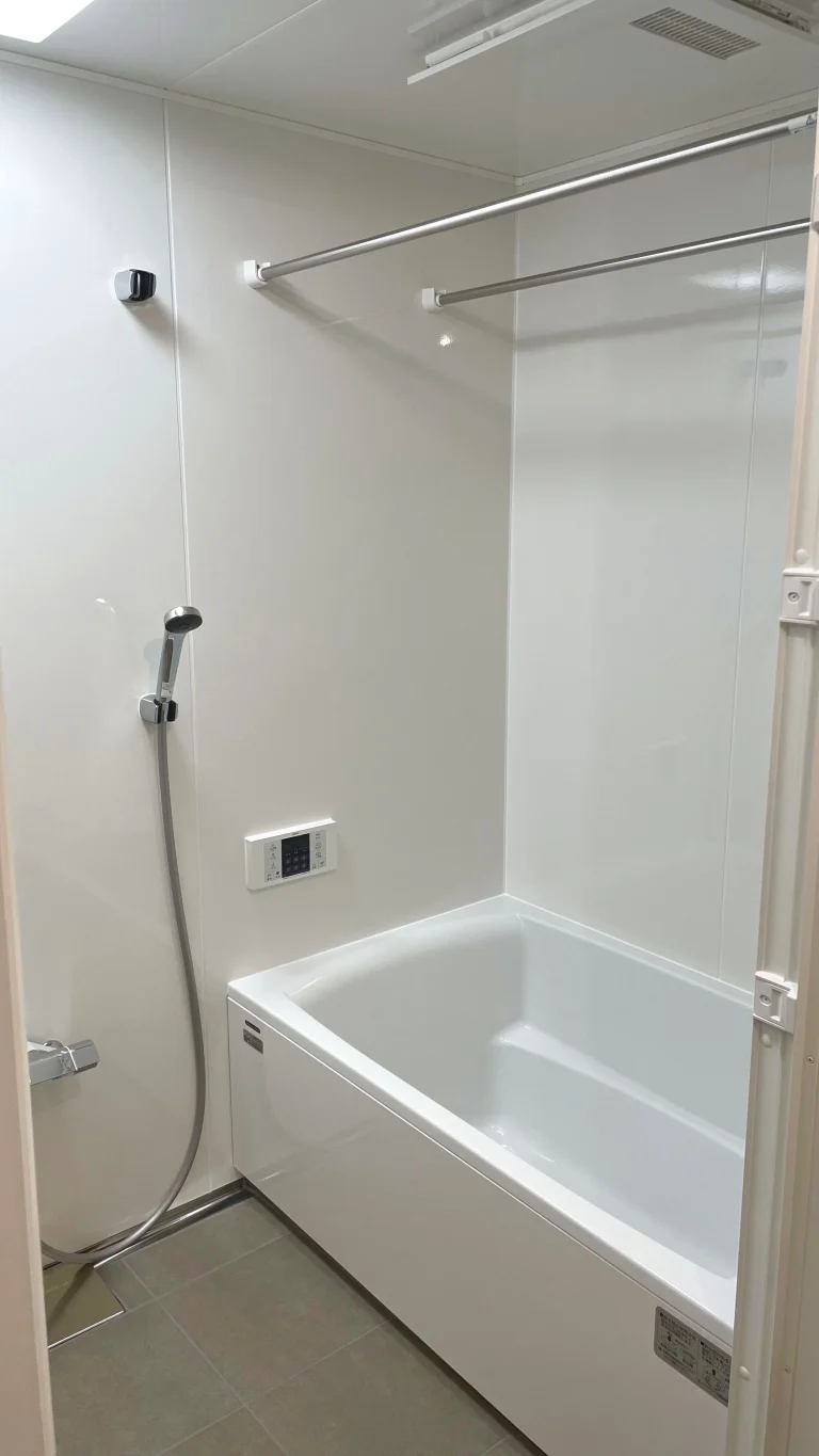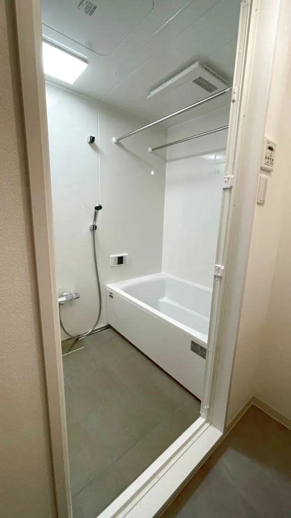 タカラスタンダードのユニットバスは、浴室全体が保温材で包まれているのでとても温かです。電気式の浴室暖房乾燥機も設置し、冬でもひんやりしない浴室リフォームが完成しました。