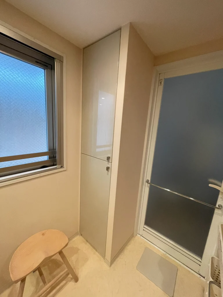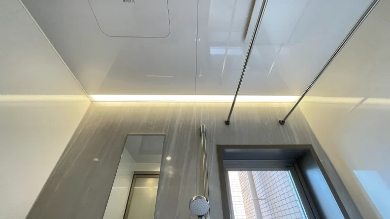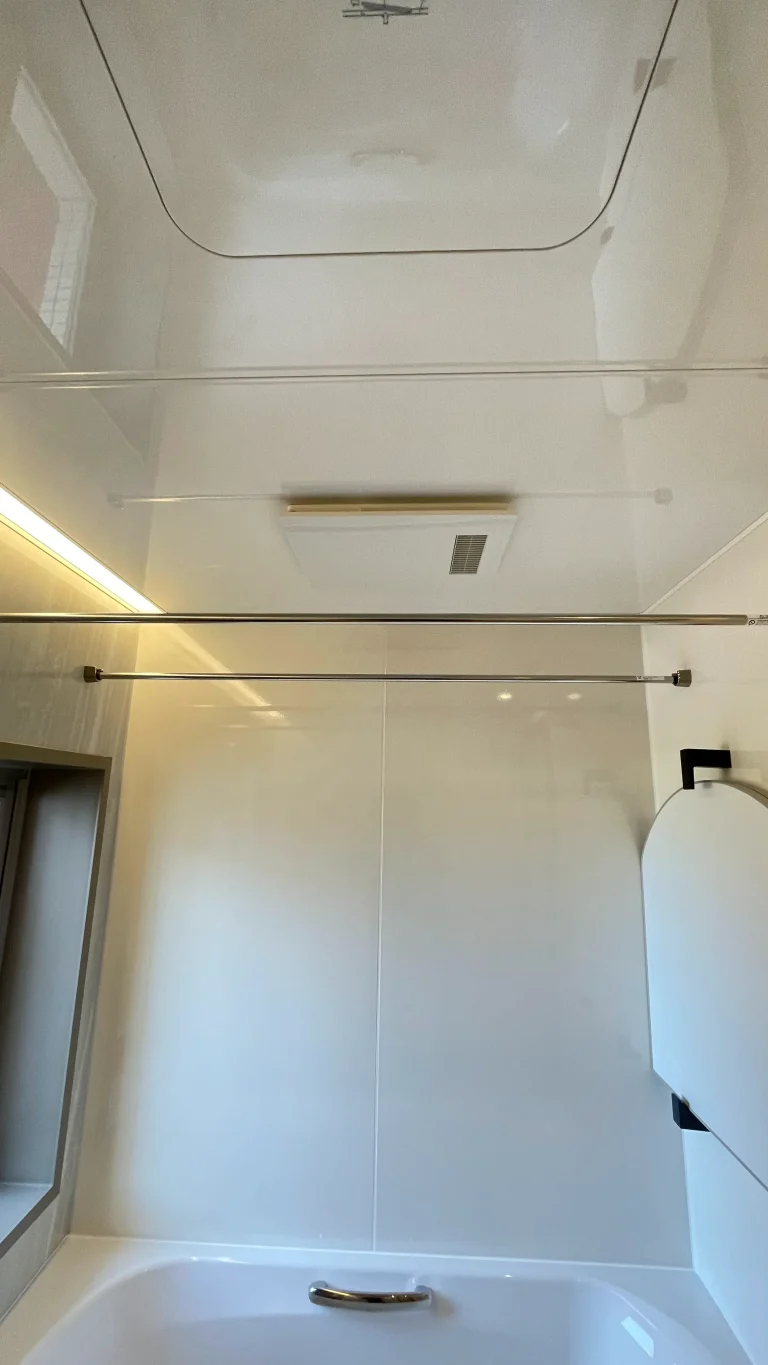 ストレートライン照明がおしゃれで、落ち着く浴室へと一新しました。