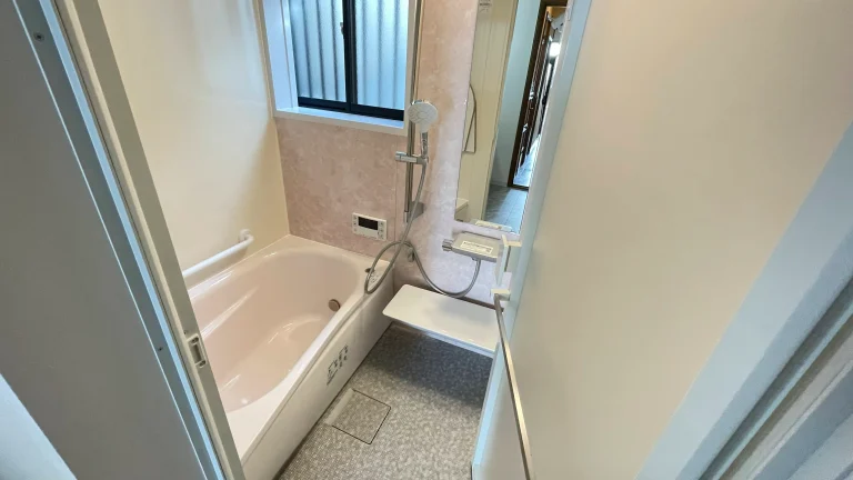 タイル張りの在来浴室は冷たく掃除が大変ですが、最新のユニットバスはきれいなだけでなく、お湯の冷めにくさや掃除のしやすさ、床の肌当たりの柔らかさなど、さまざまな面で優れています。