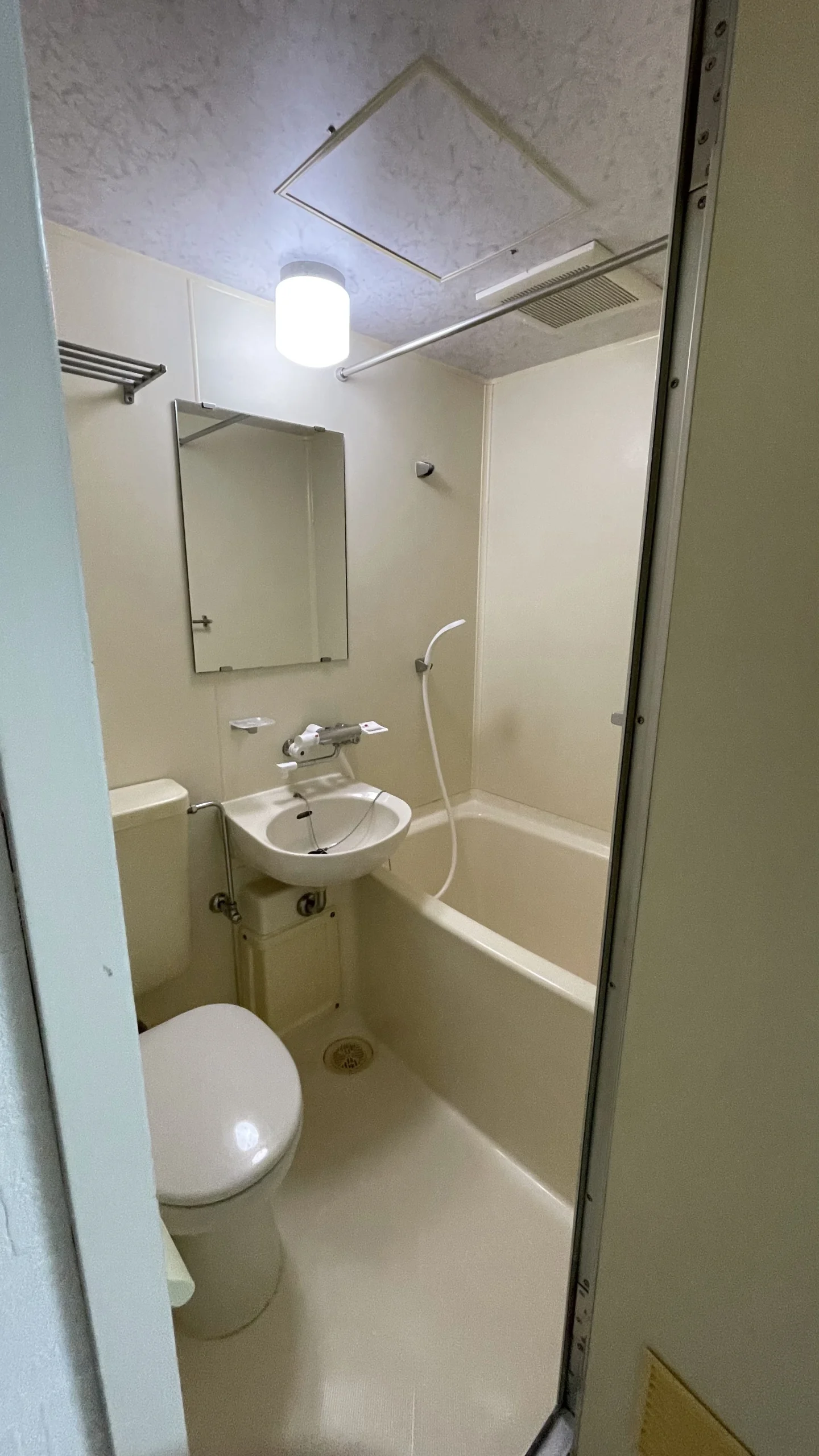ワンルームマンションの3点ユニットバスをシャワートイレユニットに改装した事例です。洗濯機を置けるように洗濯機...