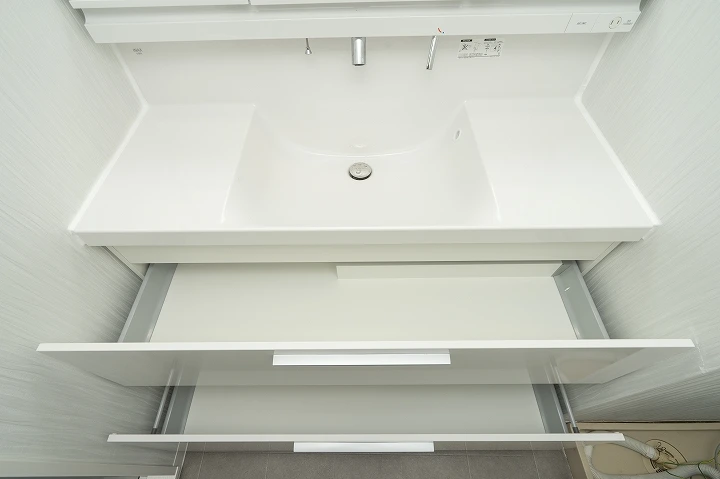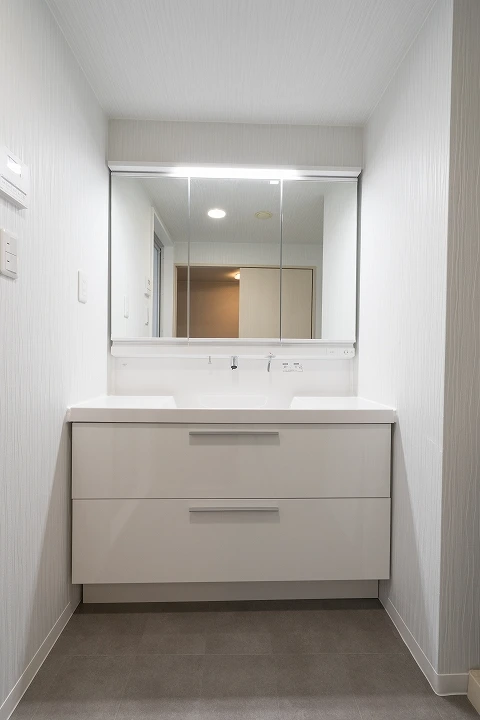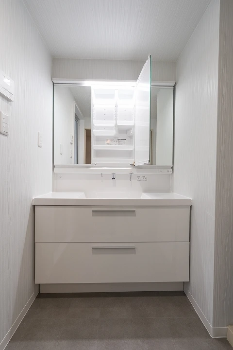 間口120㎝、三面鏡・引き出しタイプで大容量の収納
