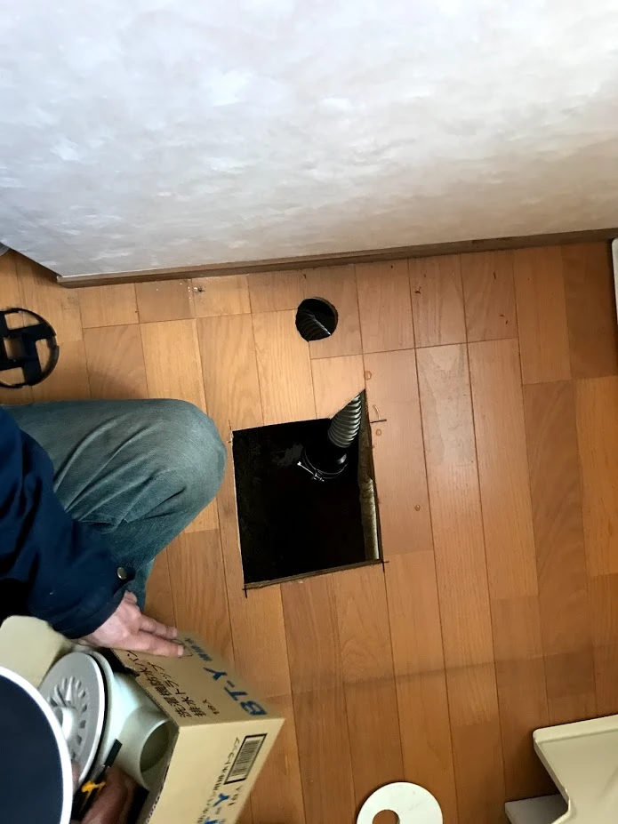 古い洗濯機パンを撤去すると…雑に開けられた穴が!?