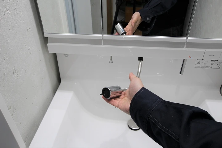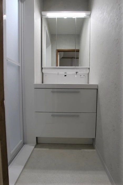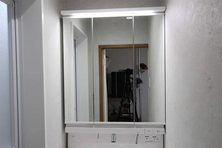 土壁はクロス仕上げ!リクシル「LC」への洗面台リフォーム